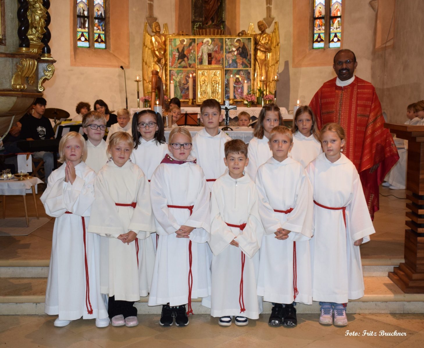 Pfarrer Wilson segnete die neuen Ministrantinnen und Ministranten und überreichte ihnen das Ministrantenkreuz – ein Zeichen ihrer Bereitschaft und Zugehörigkeit.