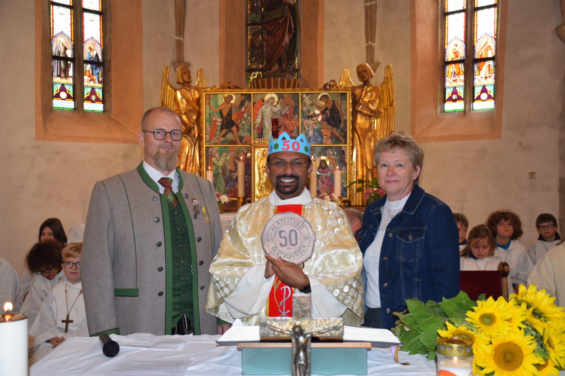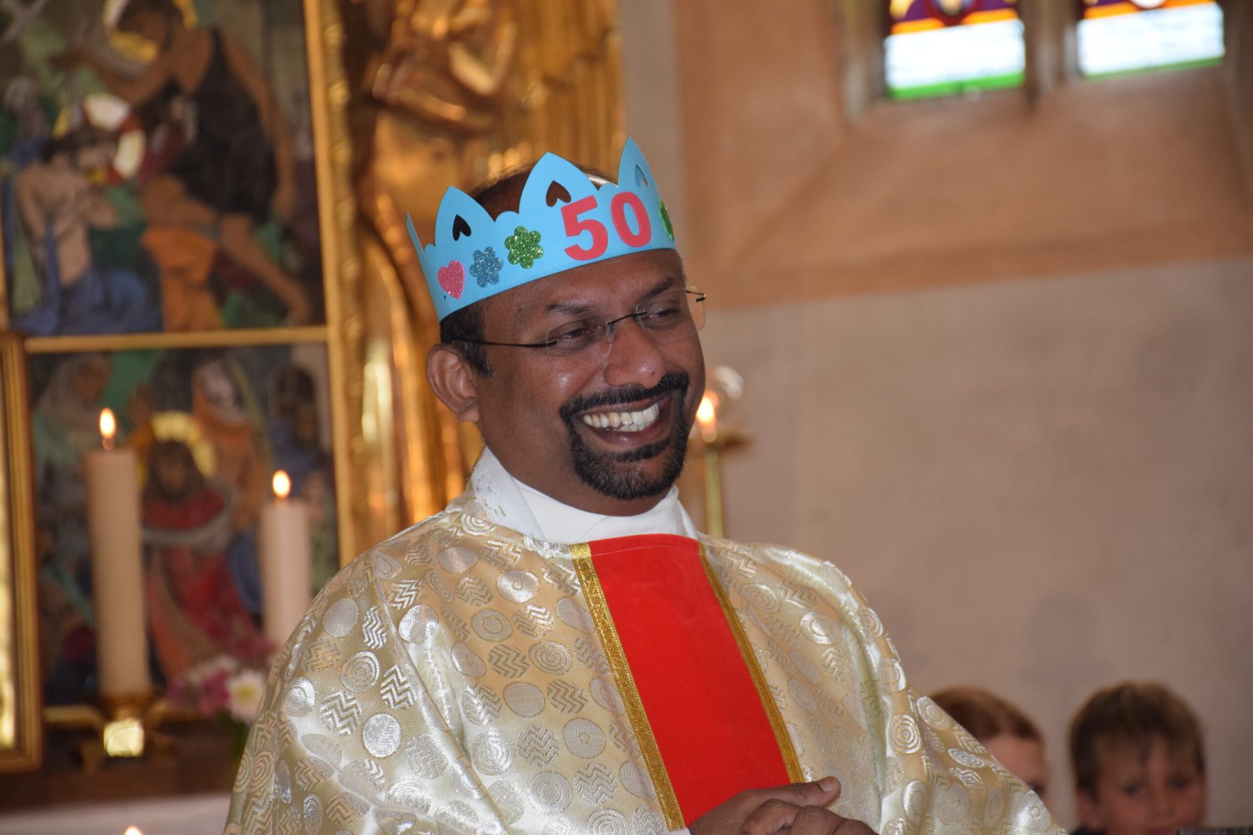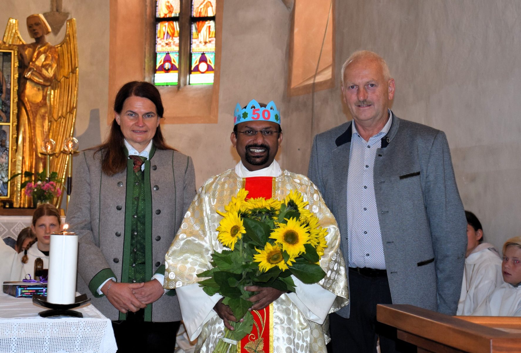 Ein besonderer Moment war dann am Ende der Hl. Messe die Gratulation an Pfarrer Wilson zu seinem 50. Geburtstag. Ihm wurde herzlich gedankt – für seine wertvolle Arbeit, seine Herzlichkeit und seinen Einsatz im Pfarrverband.