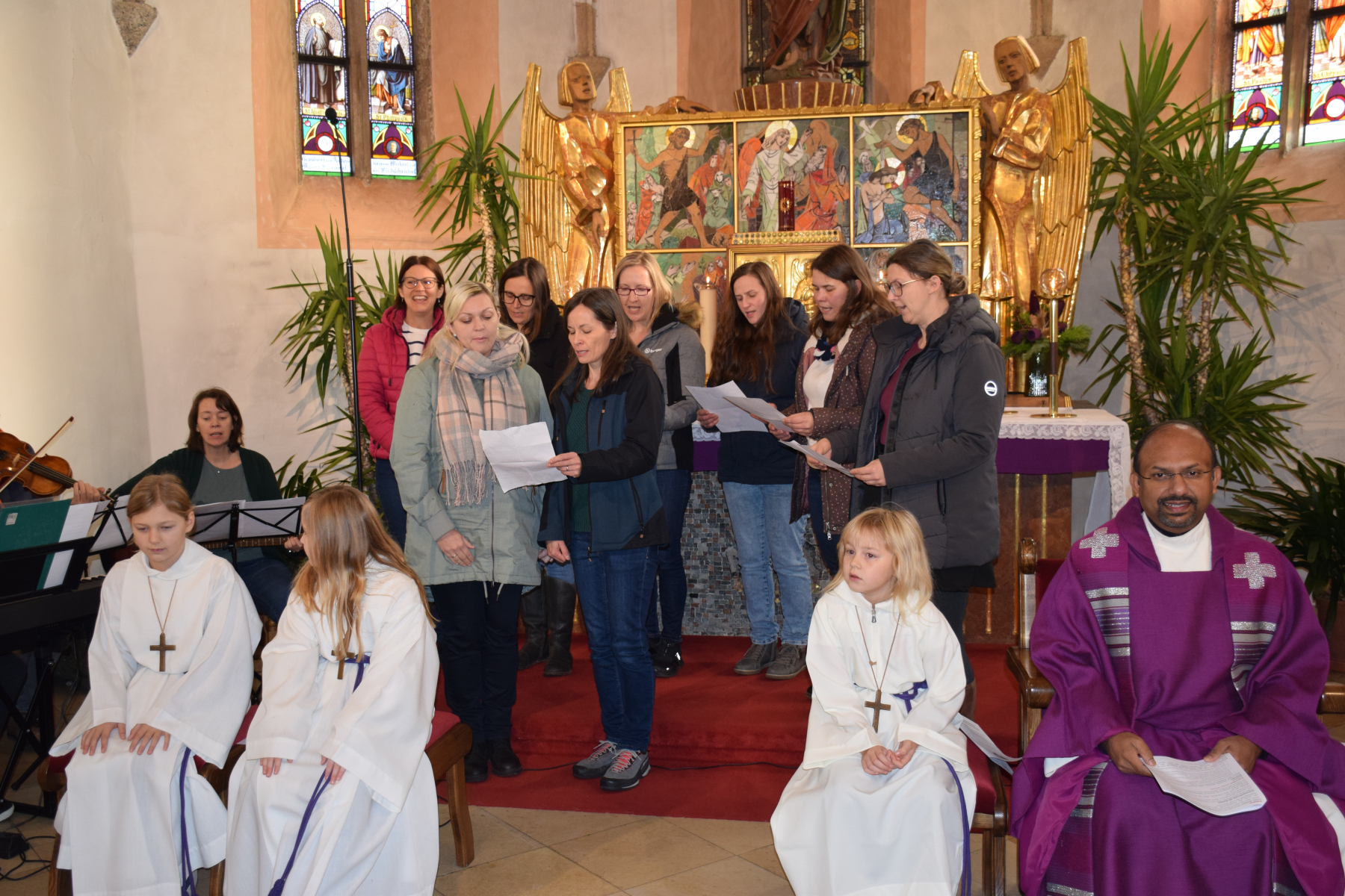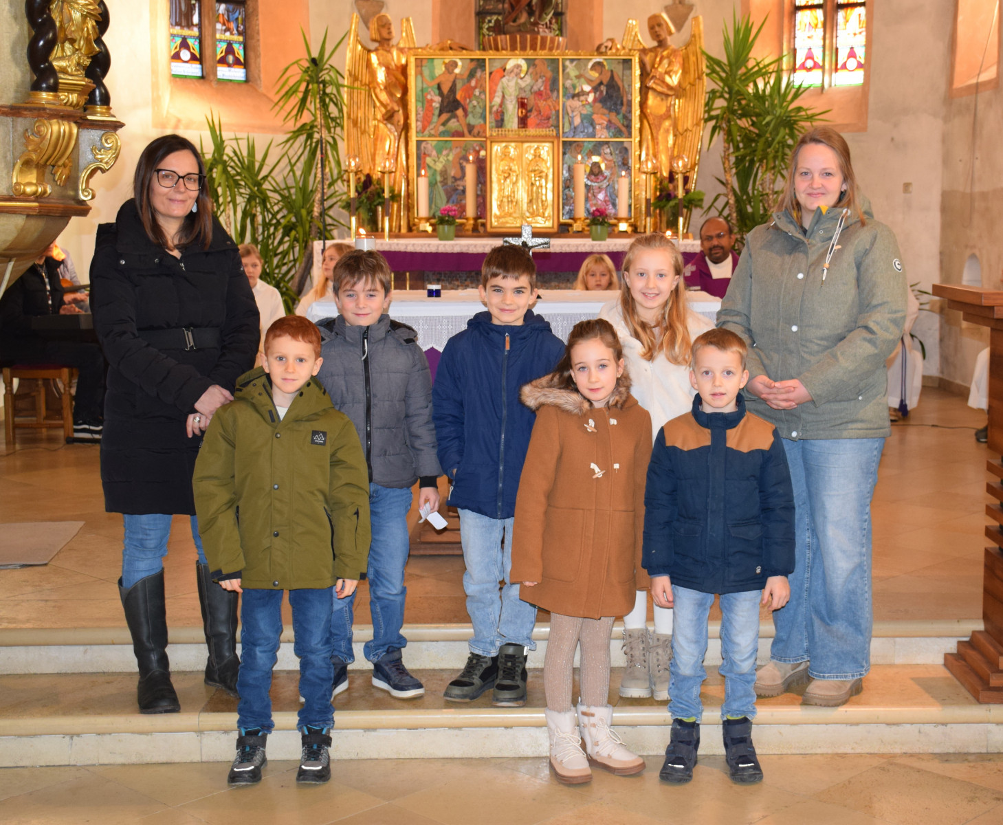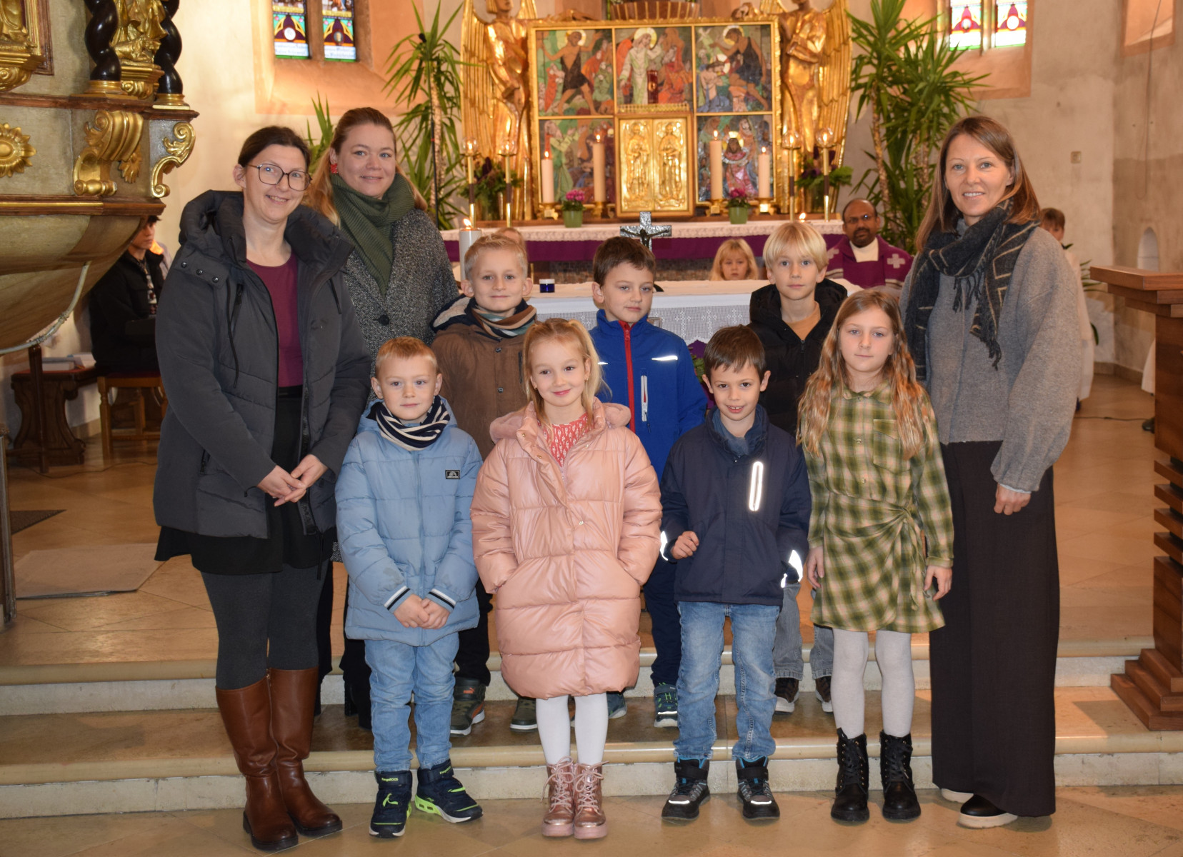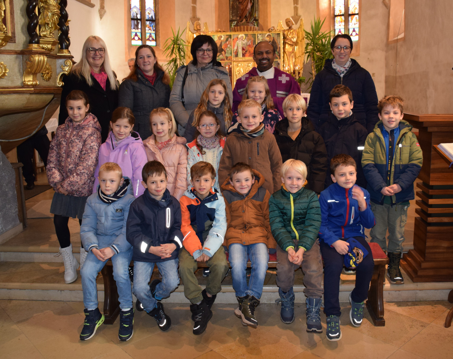 Ein sehr schöner Moment war auch, als Herr Pfarrer den Kindern die Hände salbte und den Platz segnete, wo sie im April die Heilige Kommunion empfangen dürfen.