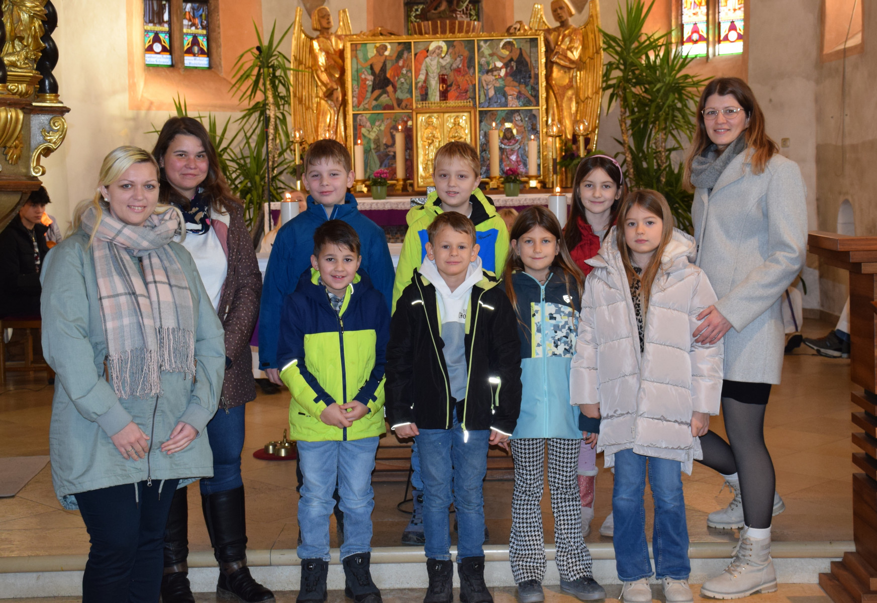 Die Religionslehrerin Michaela Brandstetter und die Tischbegleiterinnen Barbara Wischenbart, Melanie Mock, Gertrude Rücklinger, Katrin Hülmbauer, Verena Lager, Sophie Wirth, Jasmin Auer, Andrea Kramer, Eva Weigl, Doris Salzmann und Daniela Schwarz begleiten die Kinder auf ihrem Weg zur Erstkommunion. Ein herzliches Dankeschön für dieses wertvolle Engagement!